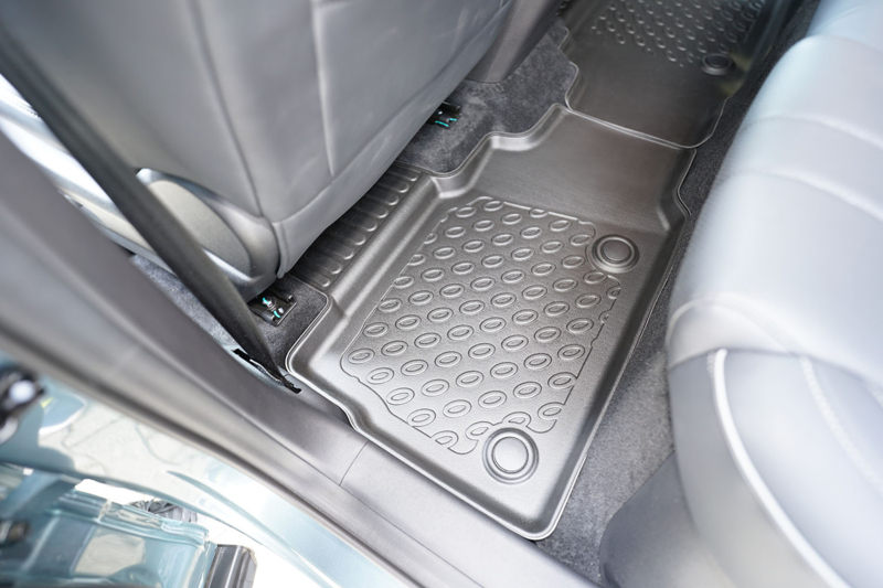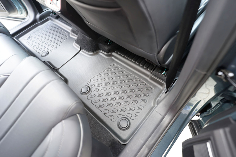 De matten zijn vervaardigd uit hoogwaardig, geurloos TPE-rubber, voorzien van opstaande randen en een antislipstructuur. Ze beschermen het interieur optimaal tegen vocht, modder, zand en andere vervuiling – ideaal voor dagelijks gebruik, in alle seizoenen.