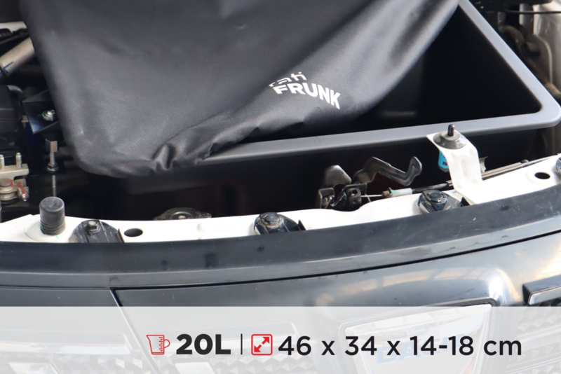 Maak slim gebruik van de ongebruikte ruimte onder de motorkap van uw Dacia Spring met de RATI Frunk (front trunk). Deze extra bagageruimte is perfect voor laadkabels, accessoires en dagelijkse benodigdheden – en houdt zo de kofferbak achterin vrij voor grotere bagage.