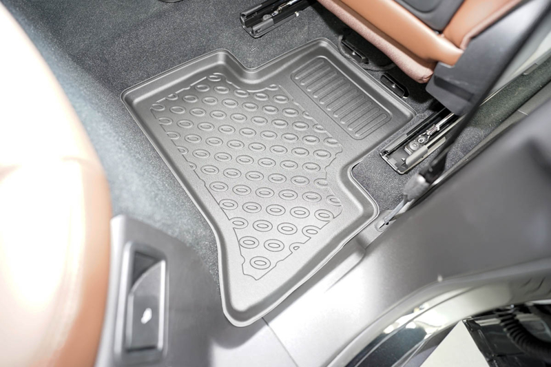 De matten zijn vervaardigd uit geurloos en antislip TPE-rubber, en hebben verhoogde randen van ca. 5 cm om vuil, vocht en modder effectief op te vangen. Ze beschermen het interieur optimaal en zijn perfect geschikt voor dagelijks gebruik onder alle omstandigheden.