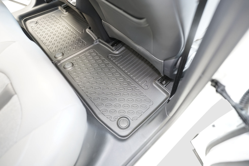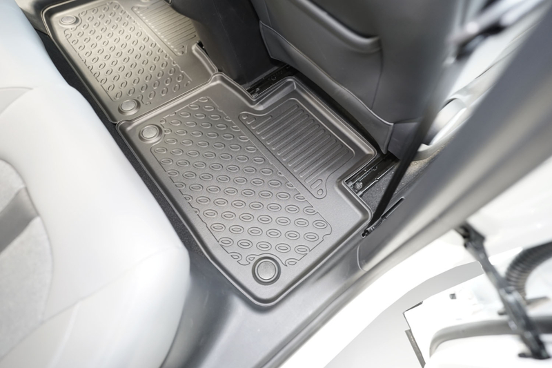 De set biedt volledige bescherming voor de voor- en achtervoetruimte en sluit perfect aan op het interieur van deze volledig elektrische SUV.