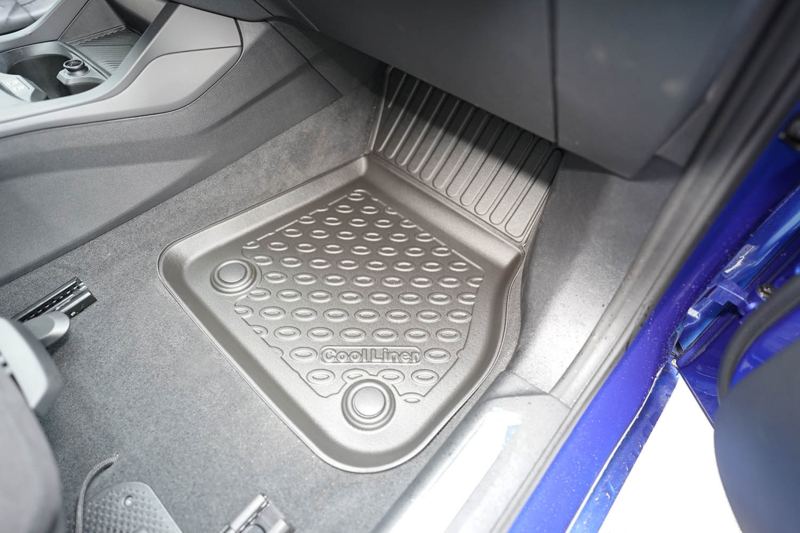 De matten bieden een perfecte pasvorm voor de voor- en achtervoetruimte en zijn afgestemd op het interieur van deze nieuwste generatie BMW.