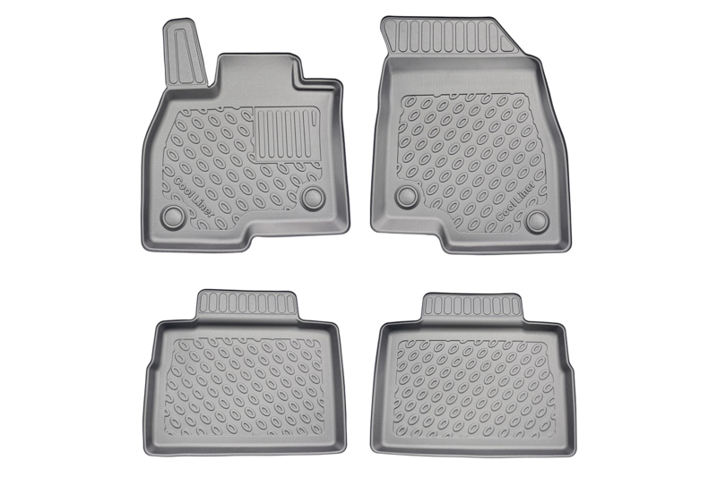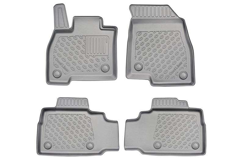 Rubberen schaalmatten op maat voor Jaecoo 7 / J7 met benzinemotor. Niet geschikt voor PHEV. Voor- & achtervoetruimte. Antislip TPE, opstaande rand